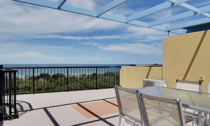 This absolute beachfront two level apartment has no roads to cross. Just stroll through the dunes to the pristine golden beach. Panoramic 360 degree ocean and hinterland views from your own balcony and own private rooftop. Flagged controlled & safe beach located just outside the resort.