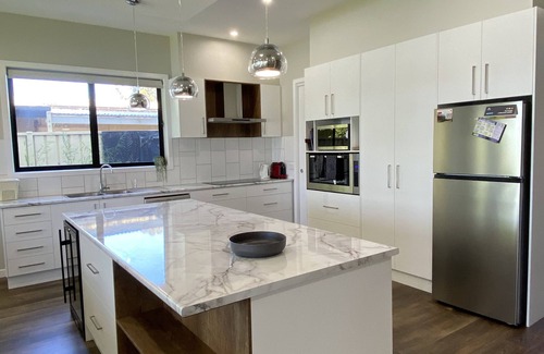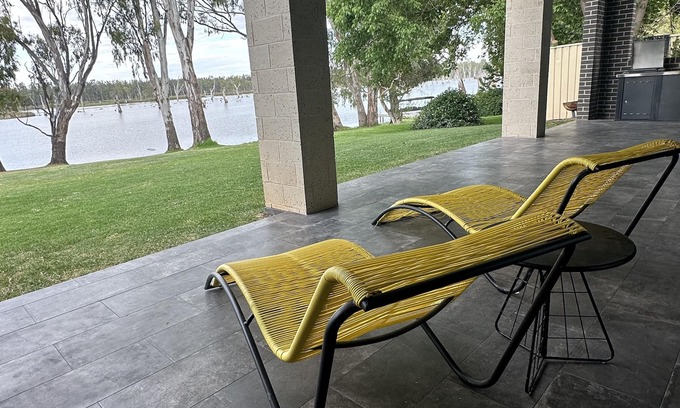 As new home with waterview and water access. Our home includes a movie room with barn doors, 8ft pool table, table tennis table, BBQ, breakfast bar overlooking the river, and three living areas. Fully air-conditioned/heated. Beautiful river views from the balcony