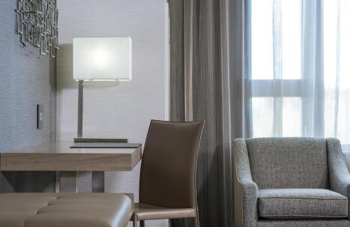 Located in the Discovery Park campus, AC Hotel by Marriott Boston Cambridge is 8 minute walk from the Alewife Station (T train). Complimentary WiFi is provided on the property. Tufts University is 2.5 miles away where you have Harvard University . The property has a tapas-style lounge and meeting spaces that can accommodate between 5 to 100 people. There is a 24-hour front desk. Guests also have complimentary access to a 24-hour fitness facility with cardio equipment, free weights and a salt-water pool. All rooms come with a desk, a mini-refrigerator and a 48-inch flat-screen TV. For your comfort, you will find free toiletries and a hair dryer. Harvard University is 2.5 mi away. The nearest airport is Logan Airport, 9.9 mi from AC Hotel by Marriott Boston Cambridge.