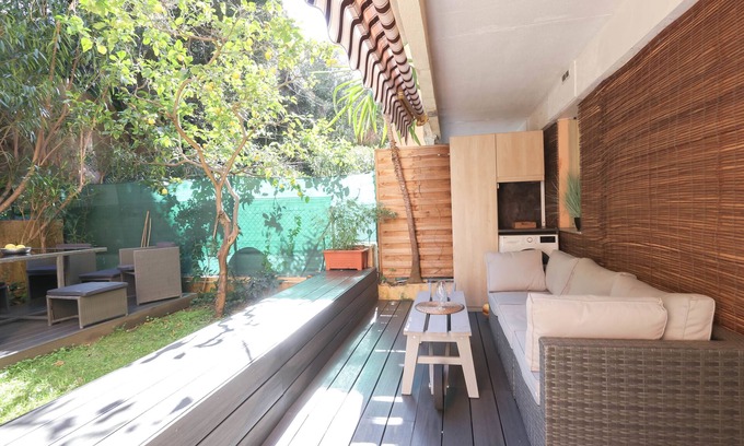 The advantage of this accommodation is its garden and an oversized terrace that allow a full enjoyment of the **Cannois sunshine**.