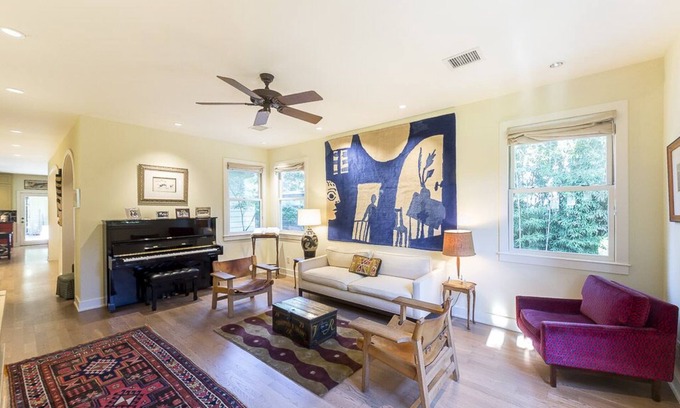 This home is located in Zilker neighborhood, one of the most sought after for any festival, places you right in the middle of all of the action while in a private home. Just minutes from Downtown Austin, this home features 4 Bedrooms + 2 Bathrooms and can sleep 8 guests. Featuring a new sleek kitchen, beautiful outdoor seating area equipped with a fire place, and a large living space for family gatherings or large groups. A great place to unwind after exploring the city! If you need more than one house, couple this home with one of our other Zilker options close by.