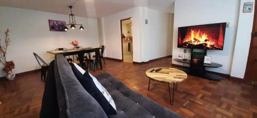 Acogedor apartamento cerca del teleférico amarillo is located in La Paz, just a 5-minute walk from Sopocachi Teleferico Station and one mile from Buenos Aires Teleferico Station. Among the facilities at this property are full-day security and private check-in and check-out, along with free Wifi throughout the property. Alto Obrajes Teleferico Station is 2.7 miles from the apartment and Parque Mirador Teleferico Station is 3.2 miles away. The apartment features 2 bedrooms, a fully equipped kitchen with a microwave, a washing machine, and 1 bathroom with a hair dryer and free toiletries. A flat-screen TV with streaming services is available. The accommodation has a fireplace. Cementerio Teleferico Station is 2.5 miles from Acogedor apartamento cerca del teleférico amarillo, while Libertador Teleferico Station is 2.6 miles from the property. El Alto International Airport is 5 miles away.