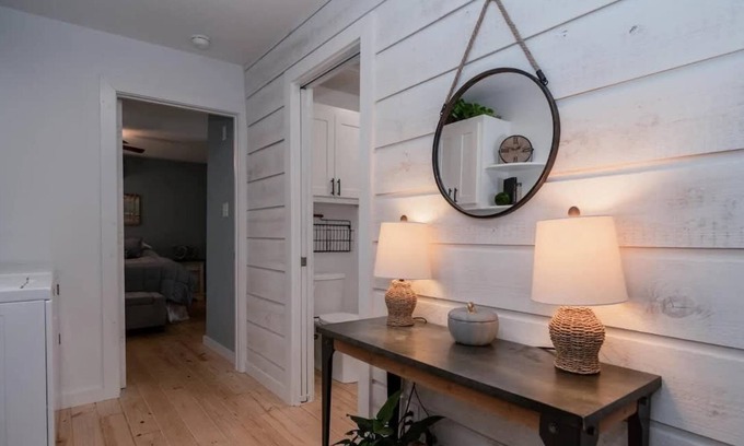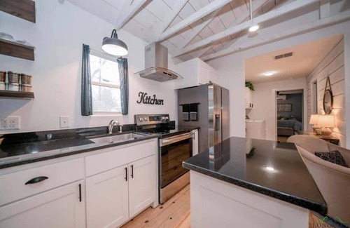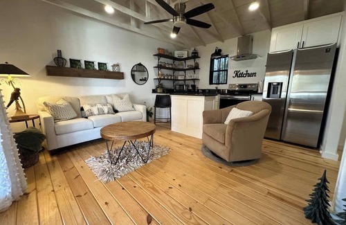 This stunning 1 Bedroom 1.5 Bathroom cottage is the perfect home for a romantic getaway, or a calming retreat. Our home has a fully stocked kitchen, spacious living area, tranquil bedroom, and a large patio featuring ample seating, a grill, and hot tub!