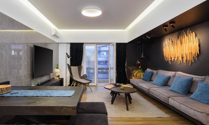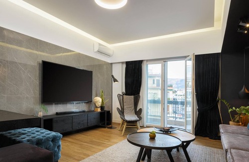 Located really close to the Temple of Olympian Zeus, this masterfully completely renovated residence is a superb choice for you next stay in Athens.Within less than 70 meters distance from the pedestrian walkway leading to all important Athenian must visits.This spectacular and spacious 4 bedroom/4 bath also features a living room ,high ceilings and wooden floors.A perfect home for 1 up to even 8 guests.The tree bedrooms feature a large double bed each, and the fourth bedroom two twin beds, all with American imported mattresses and furnished with high quality linens and pillows for the ultimate sleeping experience. All bedrooms offer large smart TVs , individual stereo system with USB doors and ample closet space. The living room features comfortable sofa and a large smart TV with surround sound system.