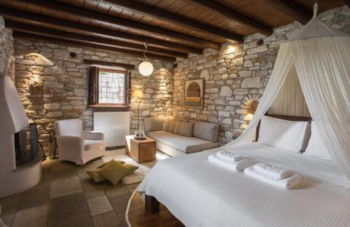 Stone-built Adis Oneirou is surrounded by a blooming garden in the village of Mouresi on Mount Pelion. It offers traditional rooms with a fireplace and views to the Aegean Sea and the lush countryside. Featuring wooden ceiling beams, wooden floors and stone walls, rooms at the Adis Oneirou hotel offer free WiFi and a seating area with an LCD TV. Each includes Coco-Mat mattresses and a bathroom with slippers and toiletries. A buffet breakfast with homemade pies, pastries and marmalades is served on the terrace with sea views or in the dining area by the fireplace. The beaches of Damouhari and Papa Nero are a 5-minute drive away. The scenic village of Tsagarada is at 2.5 mi. Hania ski center is within a 20-minute drive. Free private parking is available at the property.