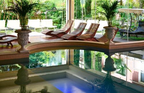 Overlooking Lake Garda and a few steps from its shores, the Admiral Hotel features a panoramic rooftop terrace with hot tub. Set 1.2 mi from central Desenzano del Garda, it offers free Wi-Fi and parking. With a balcony and air conditioning, rooms at the Admiral Hotel Villa Erme all include a safe and mini-bar, plus wooden floors. A heated covered swimming pool, small fitness corner and sauna are available on site. Bikes are available at no extra charge. Attentive staff serves a varied buffet breakfast, Italian specialties are also prepared at the pool-view restaurant. After a day exploring the lakeside, guests can sip a drink from the bar on the terrace. Sirmione, set on a promontory overlooking the lake, is 4.3 mi from the hotel. The Gardaland theme park is a 25-minute drive away.