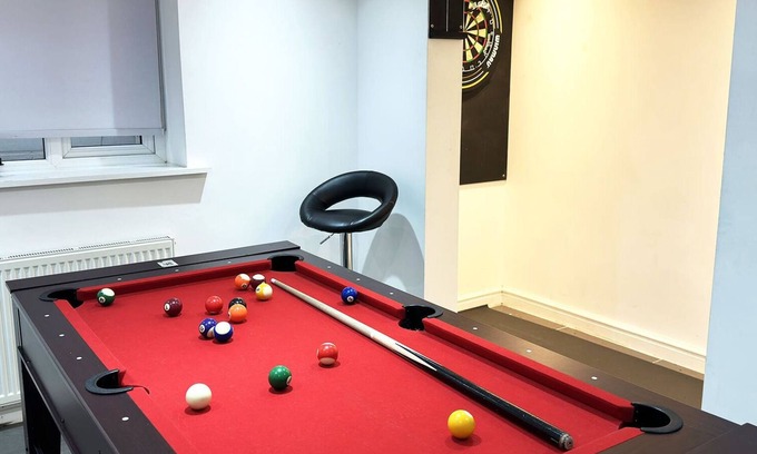 - Games room with table football, pool and darts