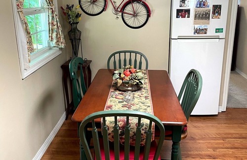 Fully equipped kitchen, walk-in shower in the bathroom, cable television, wifi, quiet neighborhood. Deck on the side of the house with outdoor seating.