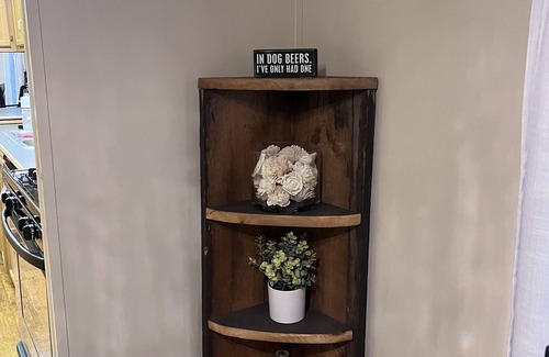 Fully stocked kitchen with cookware, microwave, dishes, silverware, full stocked barware, wine opener, beer opener, basic spices, 12 cup coffeemaker with filters and regular & decaf coffee provided. 4 burner gas grill on furnished covered deck with string lights.