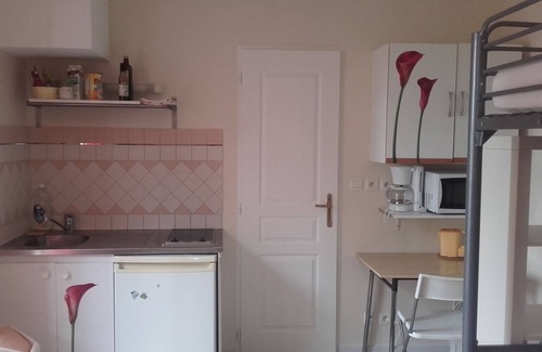 Studio located at 31 rue des grands, small independent studio, on the ground floor of a small, peaceful co-apartment; furnished studio for up to 3 people; with a loft bed and a double sofa. Fully fitted kitchenette, ceramic hob, microwave, coffee maker + shower room, wc, sink,