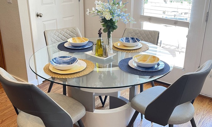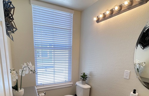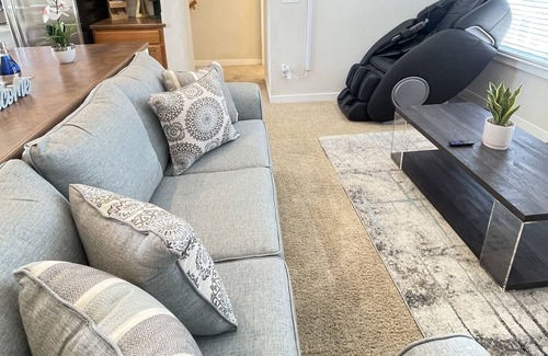 Our townhome is located in a family friendly community that's right across from the tether ball court for you and your guests to enjoy. If you love the outdoors, the home offers a patio on the front door entrance and a mid-level balcony with seating to feel the calming breeze. Our cozy townhome offers 2 bedrooms (1 king bed & 1 queen bed) along with 1 queen size pull-out couch that sleeps up to 6 guests. A full kitchen, garage access and more!