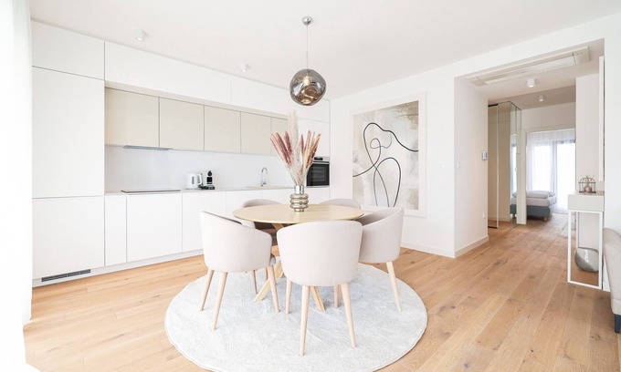 Once you check-in you'll be able to enjoy the first floor two-bedroom apartment in our exclusive property. This beautiful, modern apartment consists of a kitchen with all the amenities that you need for cooking and dining, a living room area with a sofa and Smart TV, two bedrooms with comfortable king-size beds, two bathrooms equipped with basic toiletries, a toilet.