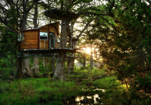 Adventures Await at this Stunning Tree House Retreat in Texas is located in Spicewood.