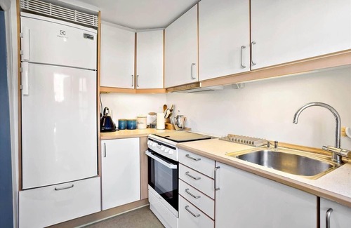Prepare a home-cooked meal in the kitchen, complete with a stovetop, a refrigerator, a coffee maker, and a microwave. And thanks to the washer and dryer, you'll even be able to travel light. Other amenities include an ironing board and a dining table.