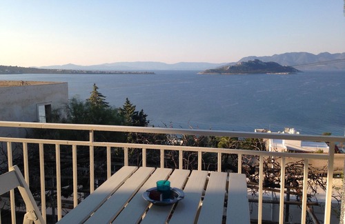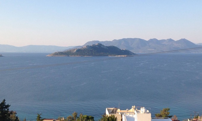 You will wake up every day with a strong sun and a beautiful view of Moni (an uninhabited island worth exploring) and Perdika a nearby fishing village where you can eat very fresh seafood just brought into the restaurant by a local fisherman.