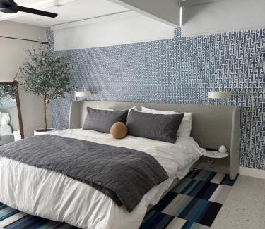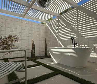 1.8 miles from Palm Springs Convention Center in Palm Springs, Aerhaus - Mid-Century Oasis offers accommodations with access to a hot tub and spa center. The property is around 2.4 miles from O'Donald Golf Course, 3.4 miles from Escena Golf Club, and 4.5 miles from Palm Springs Visitor Center. There's a year-round outdoor pool and guests have access to free Wifi, free private parking, and an electric vehicle charging station. The air-conditioned villa also features a flat-screen TV, a fully equipped kitchen with a minibar, a washing machine, and 4 bathrooms with a hot tub. The accommodation is non-smoking. Guests can relax in the garden at the property. Palm Springs Aerial Tramway is 4.5 miles from the villa, while Saks Fifth Avenue Palm Desert is 13 miles from the property. Palm Springs International Airport is 0.6 miles away.