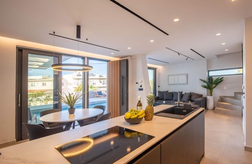 Step into a world of elegance at our Aethra Deluxe Villa, where modern design meets luxurious comfort. This stunning two-story villa in Anissaras, Hersonissos, is the perfect retreat for those seeking both relaxation and style.