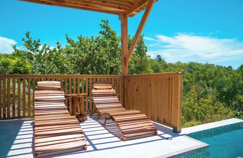 Located in Coolidge, Antigua, less than five minutes from VC Bird International Airport, come enjoy what this 1-bedroom cottage has to offer. This beautiful property features a cozy bedroom with a queen bed, a modern bathroom with a screened-in outdoor shower, and essential amenities like WiFi and AC. Nestled in a tranquil setting overlooking the airport's runway, guests can unwind and relax in their own private plunge pool. We hope you enjoy what our place and all that Antigua has to offer.