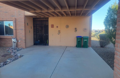 Enjoy your morning coffee on the spacious patio as you watch the sunrise over the majestic Santa Rita Mountains. Both the master bedroom and the living room have sliding glass doors that open on to the patio.