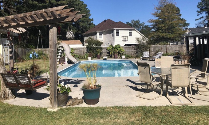 Our Cozy home is centrally located in Va Beach. We are 20 minutes from the Ocean Front, Sandbridge, Town Center and Munden Point Park. We are 2 minutes from athletic fields and SportsPlex. We love hosting families in our cozy home and there is pool for families to swim and enjoy the outdoors together. Our private outdoor area is like a mini resort with several different seating locations both in the sun or shade all facing the pool. You will have the pool all to yourself. We stay in a separate sound proof suite over the garage with private entrance. We look forward in hosting your family and friends.