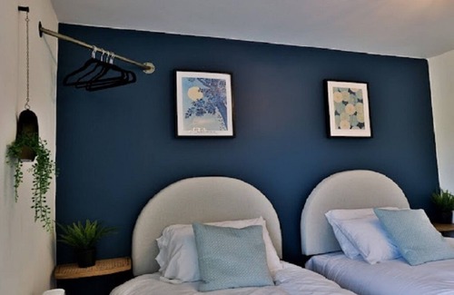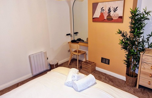 This cosy 2 bed terrace has one twin bedroom and a king master bedroom as well as a fold out small double sofa bed in the living area - making it a great stay for up to 6 guests. The lounge also has a 4 seat dining table and 40 " smart tv and follows through into the quirky kitchen and family bathroom with bath and power shower. Both bedrooms are on the first floor. There is a usable back yard with outdoor dining table and chairs also for guests to use.