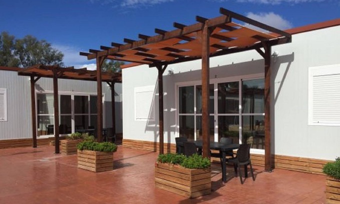 40 m2 interior bungalows plus terrace. They consist of living room with television, air conditioning and heating. Double bedroom and bedroom with bunk bed (2 beds of 90 cm.). Full bathroom with hot water.