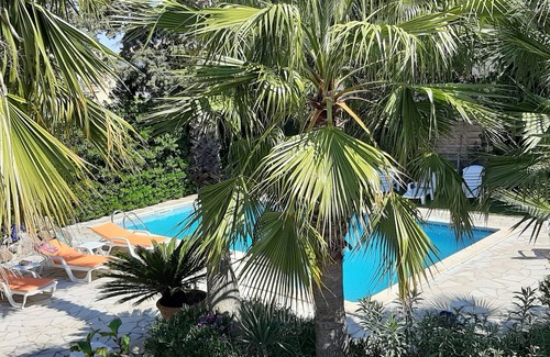 Full foot of a villa on exotic garden 1600 m². Agde 3 km from Cap Agde The owners live on the first floor: the tenants benefit from a private entrance parking spaces, terraces of the pool all book exclusively for tenants. The pool of 9. 50/4 m equipped with a Roman staircase surrounded by terraces sunbathing and multiple armchairs. Agde old fishing port 3 km from Cap d Agde known for its many summer activities. Living room equipped with 2 sofas, flat screen television, table for 7, open kitchen equipped with 4 gas burners, microwave, large fridge freezer, oven, washing machine, dishwasher, espresso machine classic coffee machine all complete for 7 people. 3 air-conditioned rooms equipped with good bedding, cupboards in sufficient quantities, 2 shower-rooms with Italian shower, wash-hand basins and 2 toilets. Various seats shaded in the sun are available Paillote barbecue bamboo lounge You will be pleasantly surprised when you enter this oasis of greenery