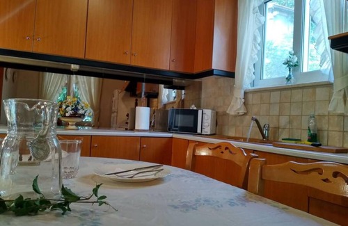 Aggelos House at Kalamitsi Lefkada is a traditional village house. Can accommodate up to 4 people. It has a double bed and two single beds. A family up to 4 persons could stay at the house. It has a big kitchen with all the amenities. Free parking on site. The house has also free Wi Fi, 32 inch TV, microwave, kettle, iron, fridge, big kitchen, washing machine.