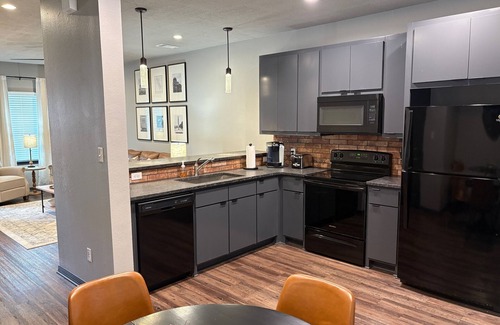 • Kitchen: Fully equipped with modern appliances, including a refrigerator, microwave, dishwasher, and Keurig coffee maker, perfect for preparing meals.