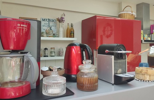 Prepare a home-cooked meal in the kitchen, complete with an oven, a stovetop, and a refrigerator, as well as a coffee maker, an electric kettle, and a microwave. Bathroom amenities include towels, toilet paper, and soap. And because there's a washer and dryer, you can go a bit lighter on your packing. Other amenities include bed sheets, an ironing board, heating, and a dining table.