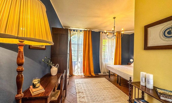 The room, with independent access from the garden, is inspired by the St. John's wort plant: yellow like the sun, the warmth and joy of the flowers that color our fields in summer; blue like the calm, peace and balance that the magical properties of this plant can give us. The environment is rustic, welcoming, particular. “Hypericum” is for everyone! It is located on the ground floor of the large farmhouse and is equipped with a private bathroom accessible to people with disabilities, with a floor-level shower without architectural barriers. The bed is an extra-large double and, upon request, can be divided into two single beds. The room is equipped with air conditioning