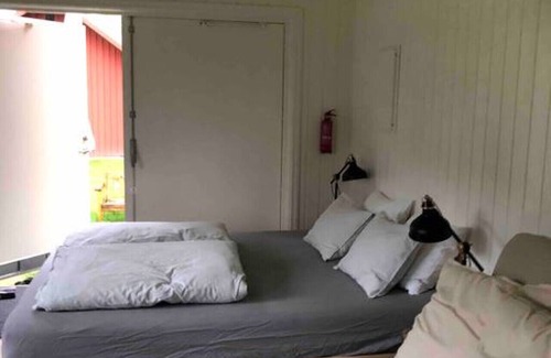 The boathouse is a studio, originally designed to keep boats, where you have a kitchen, sleep- and dining-area. The bathroom is connected and can be accessed from the outside. The boathouse is light, fresh and a comfortable place from which you can enjoy Swedish nature!