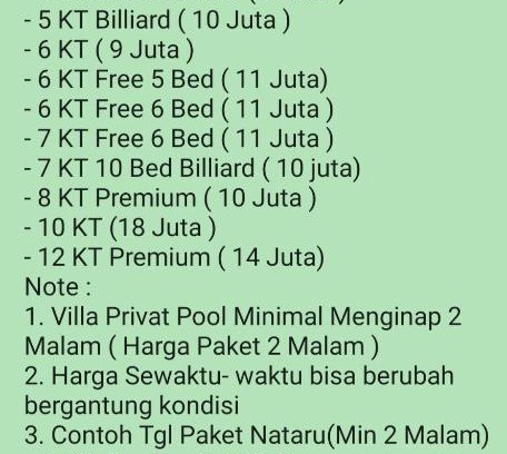 This AGV Telp kosong delapan lima tujuh empat delapan 3458 enam empat Banyak Tipe Bayar Offline paket nataru wajib menginap minimal 2 malam in Tlekung is well equipped and has all facilities that have been listed below. Please note that these details were shared to us by booking.com for the listed “AGV Telp kosong delapan lima tujuh empat delapan 3458 enam empat Banyak Tipe Bayar Offline paket nataru wajib menginap minimal 2 malam”. We solely rely on their shared details and are regarded as “accurate”. If you have any concerns about the information or accuracy describing this Villa, please let us know.