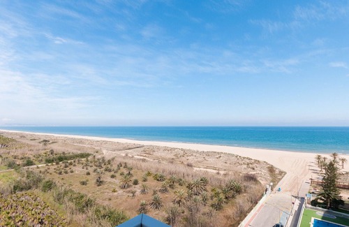 Aiguablava apartment is a luxury beachfront apartment in Gandia Beach with amazing sea views from the large terrace Its location is an ideal resort for large families looking for a relaxing holiday by the sea. Between the sand and the complex you will find a pedestrian promenade, which joins the promenade, which will allow you to take long walks by the sea. In addition, not having to cross any street makes it ideal for the elderly or families with children.From the terrace you enjoy spectacular panoramic views, which you can enjoy 24 hours a day. Large swimingpool, gym and tennis. The apartment is furnished with a modern and fresh design. Featured with smart TV, and WIFI. Air conditioning / heating in all the bedrooms and livingroom. Pets allowed cost: 40€ total stay.Ask for a Cot (20€) and baby chair (10€)You can play tennis, swimming pool. In the area you can make sea sports, mountain bike, fishing, running, kite surfing, paddle surfing.