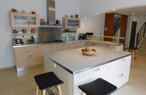 - 1 large open kitchen, fully equipped, oven, microwave, American fridge, dishwasher, 4-burner hob, 2-burner gas hob, washing machine and dryer;