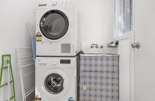 There are two bedrooms both offering queen size beds, one bedroom has a split air conditioning system with the other fitted with a ceiling fan. The accessible bathroom has been specifically designed for people with disabilities, plus there is a second toilet in the property. The laundry is fitted with both a front loading washing machine and dryer.