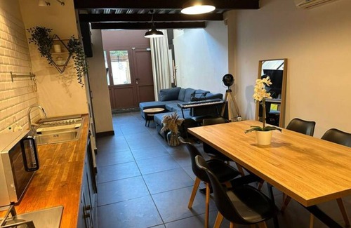 Air-conditioned house in an industrial loft spirit, composed of a living room open to a fully equipped kitchen, two double bedrooms, a beautiful bathroom and a private garden without vis-à-vis allowing to enjoy the outside.
