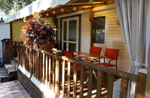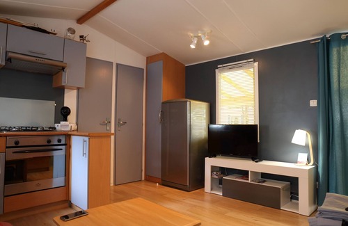 The mobile home is installed on a shaded plot of around 120m² in the residential part of the campsite.