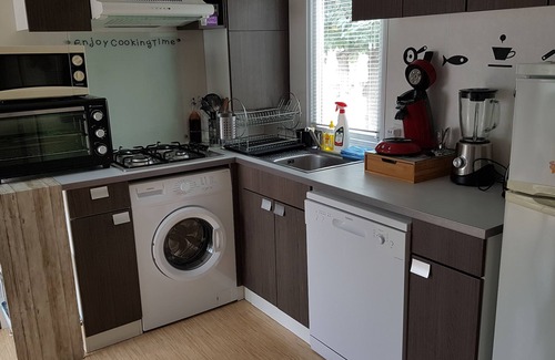 Excellent location, the mobile home is located along the playground, you can monitor your children from your terrace !! No noise at night because it closes at 21H30. 100 m from the reception, supermarket, restaurant / snack, local animation and swimming pool.