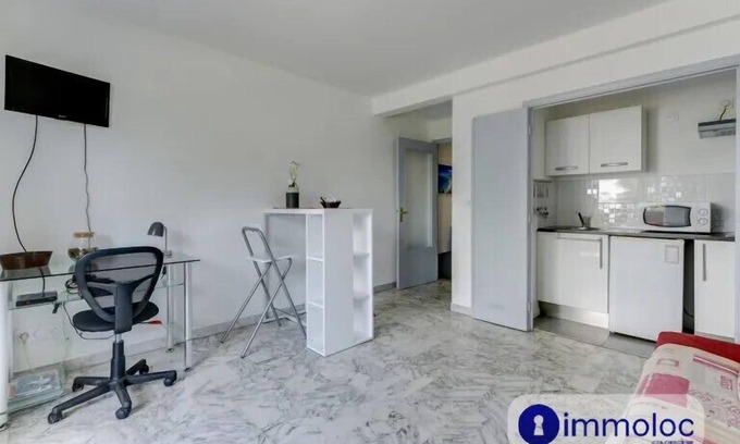 Air-conditioned studio near the Promenade des Anglais, located on the 5th floor with elevator .