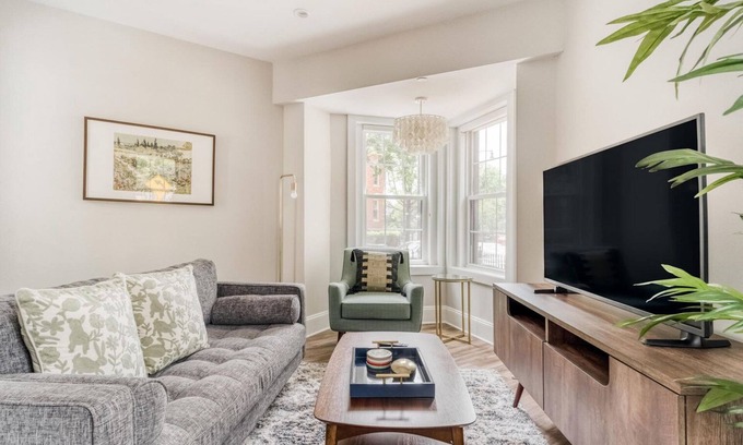 This furnished Blueground rental is located in Cardozo, a neighborhood that is also referred to as U Street West. There's a huge variety of bars, clubs, and restaurants in this area. Head to the intersection of 9th and U Streets to begin the cocktail crawl of a lifetime. You will also find a huge variety of cuisine, from fast casual to Ethiopian to rooftop beer gardens serving bratwurst. This historic area played a huge role during the Civil Rights Movement of the 1960s. Cardozo is also the setting for the African American Civil War Museum. The neighborhood is served by the DC Metro's Green and Yellow lines for quick access to the rest of the city.
