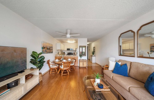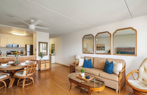 Experience Maui from Kihei Akahi C303, a comfortably furnished Kihei condo that can accommodate up to four guests and is perfect for small families, friends, or couples looking for a romantic island escape. Located in a prime central location, this condo offers easy access to all that Kihei has to offer. Enjoy time spent on the spacious furnished outdoor lanai with partial ocean views and overlooking lush colorful gardens. Step across the street and you'll find yourself on the soft white sands of Kamaole Beach Parks 2 & 3, ideal for swimming, snorkeling, or simply relaxing under the sun. Inside, the condo is fully equipped with everything you need for a stress free vacation, including a fully stocked kitchen, a comfortable main living area, and thoughtful Hawaiian touches to make you feel right at home. Whether you're enjoying morning coffee on the lanai, spending the day exploring the island, or watching a Maui sunset, Kihei Akahi C303 provides the perfect home base for your getaway!