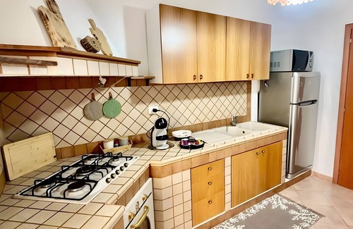 The villa is located just a few minutes' walk from the beautiful Balai beach and a short distance from the Acque Dolci beach. The location is ideal for easily visiting the city on foot. The house features a spacious veranda equipped for outdoor dining, two double bedrooms, and a sofa bed in the living room, all with air conditioning and heating. The kitchen is fully equipped for all your needs, with pans, oven, toaster, kettle, microwave, and more. There is also a closed and shared inner courtyard, perfect for letting your children play safely.