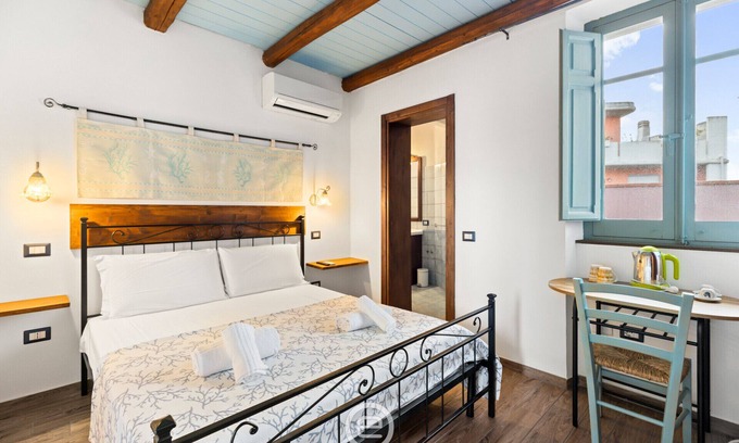 In the heart of Oristano, overlooking Piazza Mariano, Room 3 at Albachiara is a beautifully furnished double room inspired by local tradition. Here, you'll find a cozy and welcoming atmosphere, perfect for a relaxing stay. 🏡✨