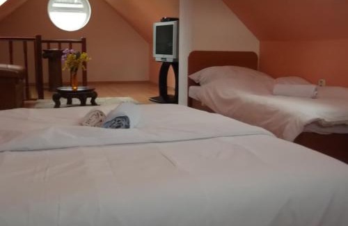 Alcorso Pension is a guest house of modern family type located only a 5-minute walk for the city center. Free WiFi and parking is available. Al Corso’s rooms are furnished with solid wooden furniture. All include a TV and a private bathroom with a shower. You can order a decent breakfast if you are accommodated in one of our single bed, double bed or three bed rooms. The closest restaurants, a shopping mall and shops can be found in the neighborhood only 328 feet away. Alcorso Pension is located next to the City Park, where you can enjoy jogging or walking. The Aqualand Banska Bystrica can be reached within 1640 feet. There is also the biggest Slovak disco club Ministry of Fun Banska Bystrica reachable within a 15-minute walk. The Economic Faculty of the Matej Bel University is a 2-minute walk away and the Roosevelt Hospital is within 2625 feet. The Museum of Slovak National Uprising is located 0.7 mi away and the Selce Ski Area is set within 6.2 mi. The Sachticka Ski Area and the Kraliky Ski Area are in a radius of 8.1 mi. The Sliac Airport is 8.7 mi away and the Ski Snow Donovaly can be found within 9.9 mi from the property.
