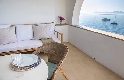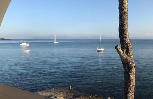 Wonderful apartment located on the seafront, in a very quiet residential area, Alcanada, with stunning views over the bay of Alcudia and direct access to solarium above the sea.