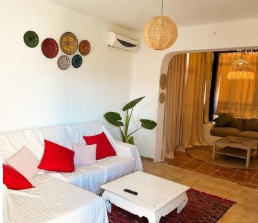 Alcudia Smir Complex piedras del Mar offers accommodations in Fnidek, a 10-minute walk from Plage Tres Piedras. This property offers access to a terrace, free private parking, and free Wifi. The air-conditioned apartment is composed of 1 separate bedroom, 2 living rooms, a fully equipped kitchen, and 1 bathroom. A flat-screen TV is featured. The accommodation is non-smoking. Guests can enjoy the outdoor swimming pool and garden at the apartment.