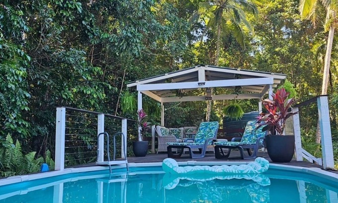 Just a short stroll from all the major attractions, Alena Starhouse is nestled in its own private jungle paradise. Whether you’re looking to explore the wonders of the Daintree or simply relax, this is the ideal base for your adventure. The home offers cool, comfortable, critter-free living with modern conveniences, including air conditioning and overhead fans. You’ll have your own private pool and pool house, offering the perfect place to unwind after a day of exploring.
