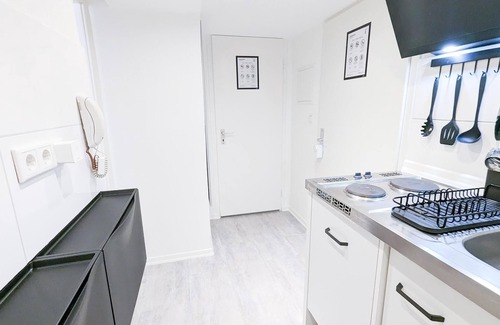 Cozy 3-room apartment with 5 beds in a prime, central location in Ludwigsburg near the shopping mall Marstall Center. Ideal for business travelers, workers or young groups. This apartment features 2 bedrooms, 1 shared dining area, kitchen & bathroom.