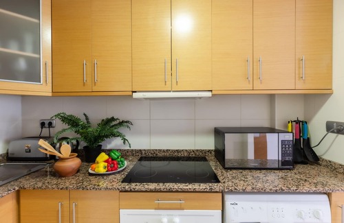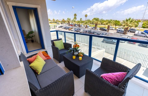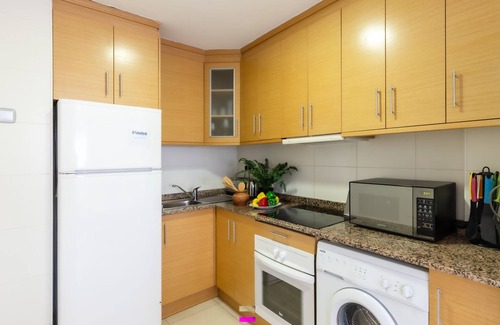 This apartment by the sea in Alicante has a terrace, American kitchen equipped with a fridge, oven, freezer, washing machine, crockery, cutlery,